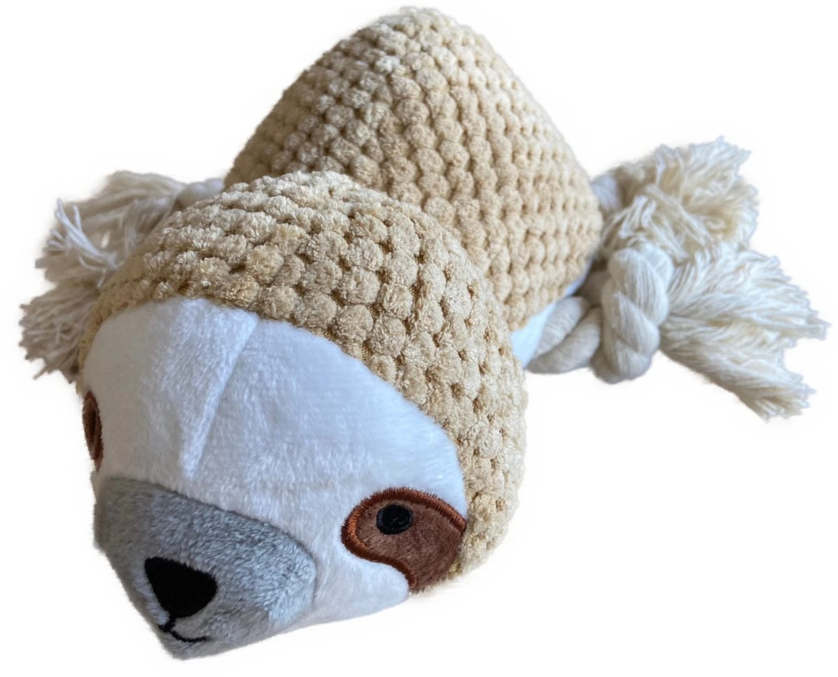 BoDutch honden knuffel – Luiaard – Puppyknuffel – Flostouw – Met piep – Beige – 21 cm