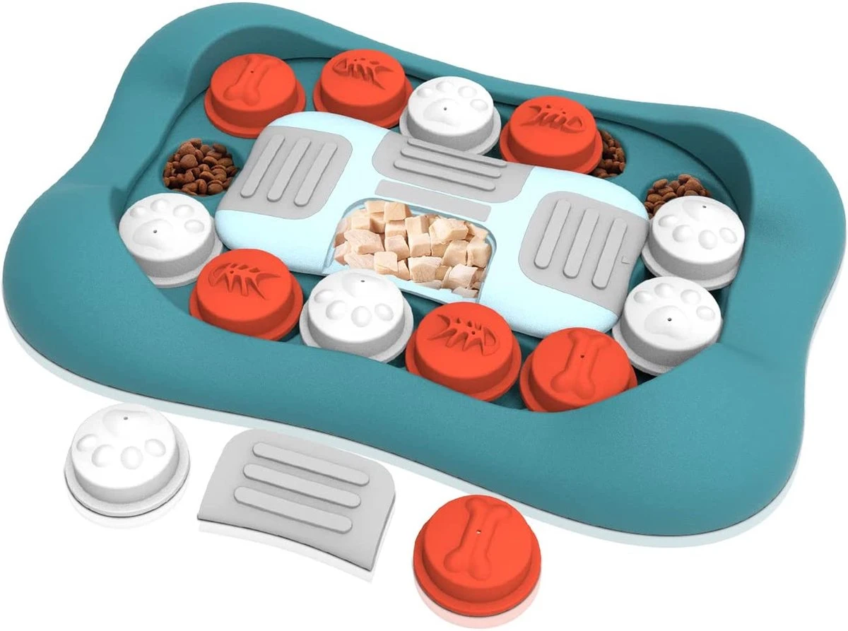 - Langzame intrekking: dit puzzel-voederstation heeft 16 (“12+4”) gaten voor voering, 13 schuivers en 4 siliconen afdekkingen. Het kan worden gebruikt als grappige voederdispenser om de voedselsnelheid van de hond door spelletjes te vertragen. De spijsvertering van de hond te ondersteunen, obesitas van de hond en andere problemen te verlichten of te voorkomen, wat ten goede komt voor de gezondheid van huisdieren.